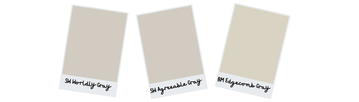 Sherwin Williams Worldly Gray and Benjamin Moore Edgewood Gray